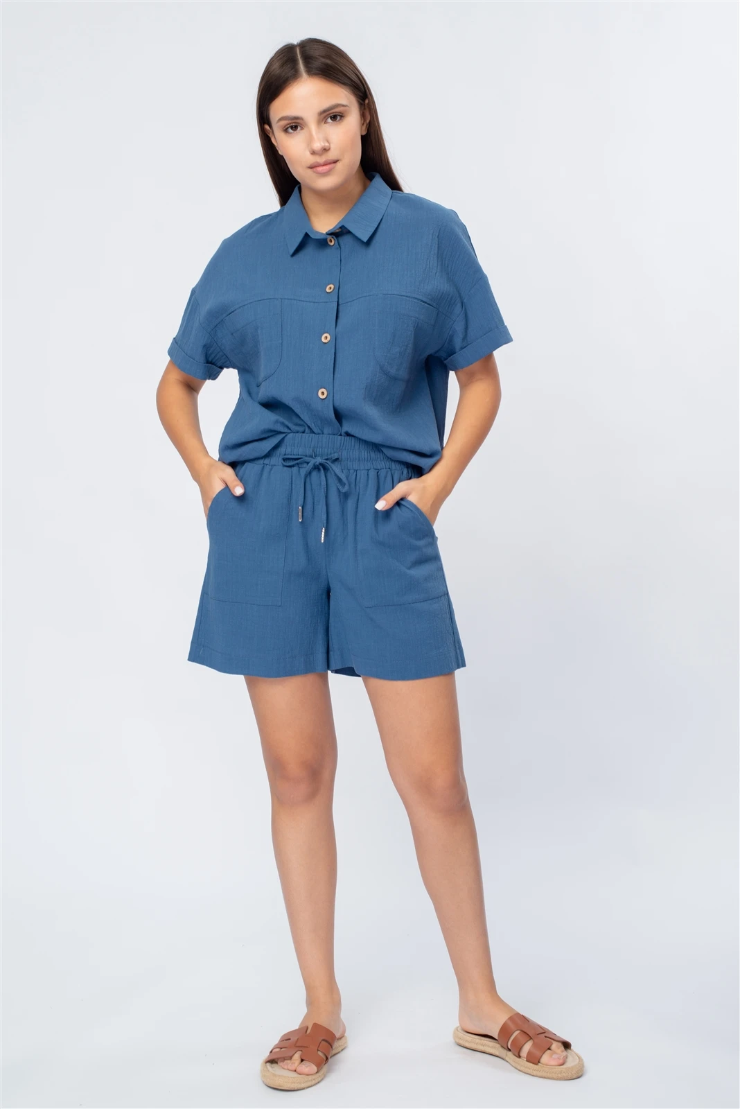 При производстве коллекций используются натуральные, смесовые ткани, а также трикотаж. В оптовую закупку можно включить женскую одежду из хлопка, льна, атласа, шифона, денима, жаккарда, штапеля и, конечно, из костюмных тканей.