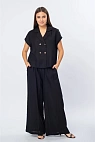 Брюки лёгкие и свободного силуэта. Посадка высокая — на талии мягкая резинка, создающая небольшие сборки и обеспечивающая комфортную посадку.