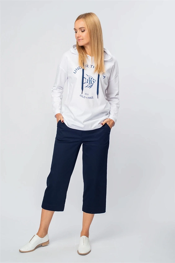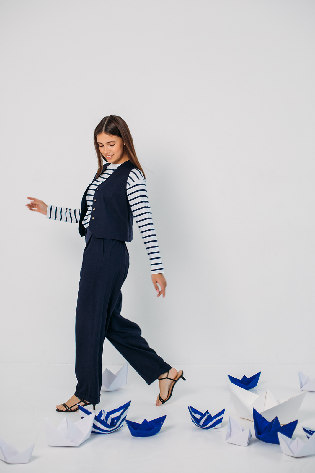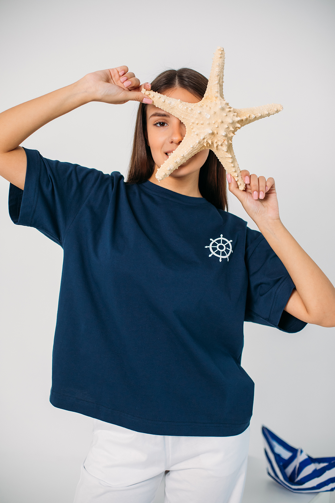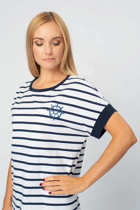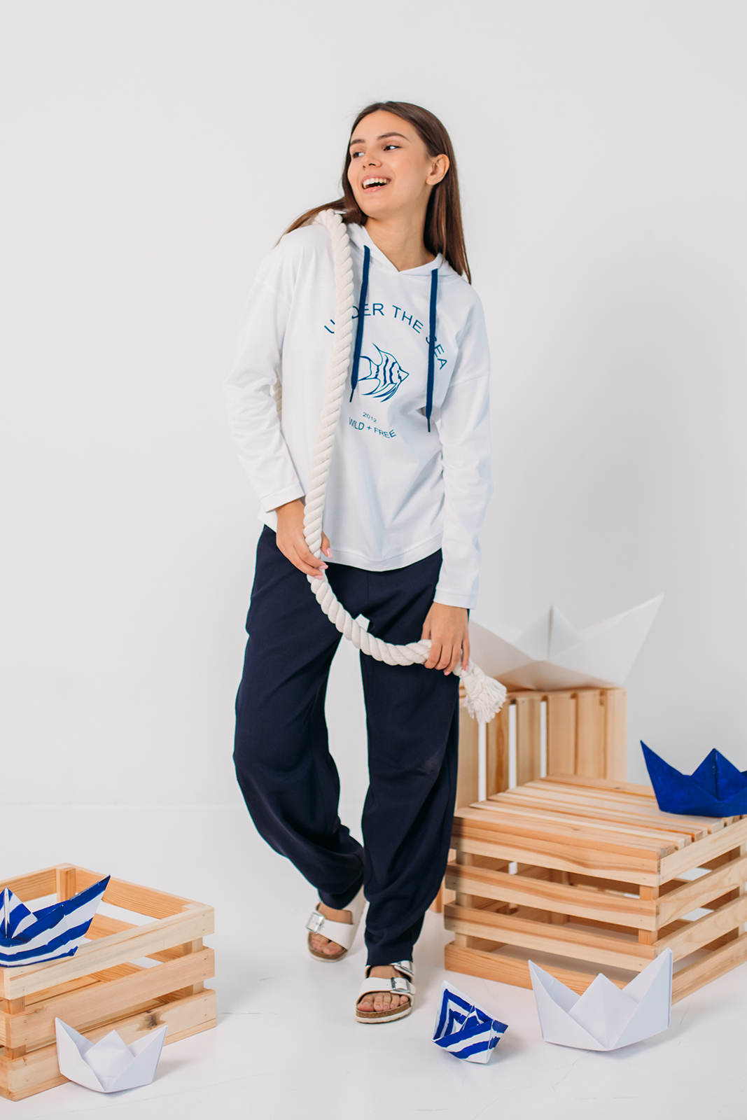 Капсула переносит нас в мир, где соленый бриз, шум волн и отблески солнца на воде становятся источником вдохновения. Это история о свободе, приключениях и романтике моря. Насыщенный синий, как океан, белоснежный, словно паруса, и светло голубой как бескрайнее небо над головой. Полоски в сочетании с однотонными моделями добавляют динамики, а аккуратные принты с морской символикой завершают образы.