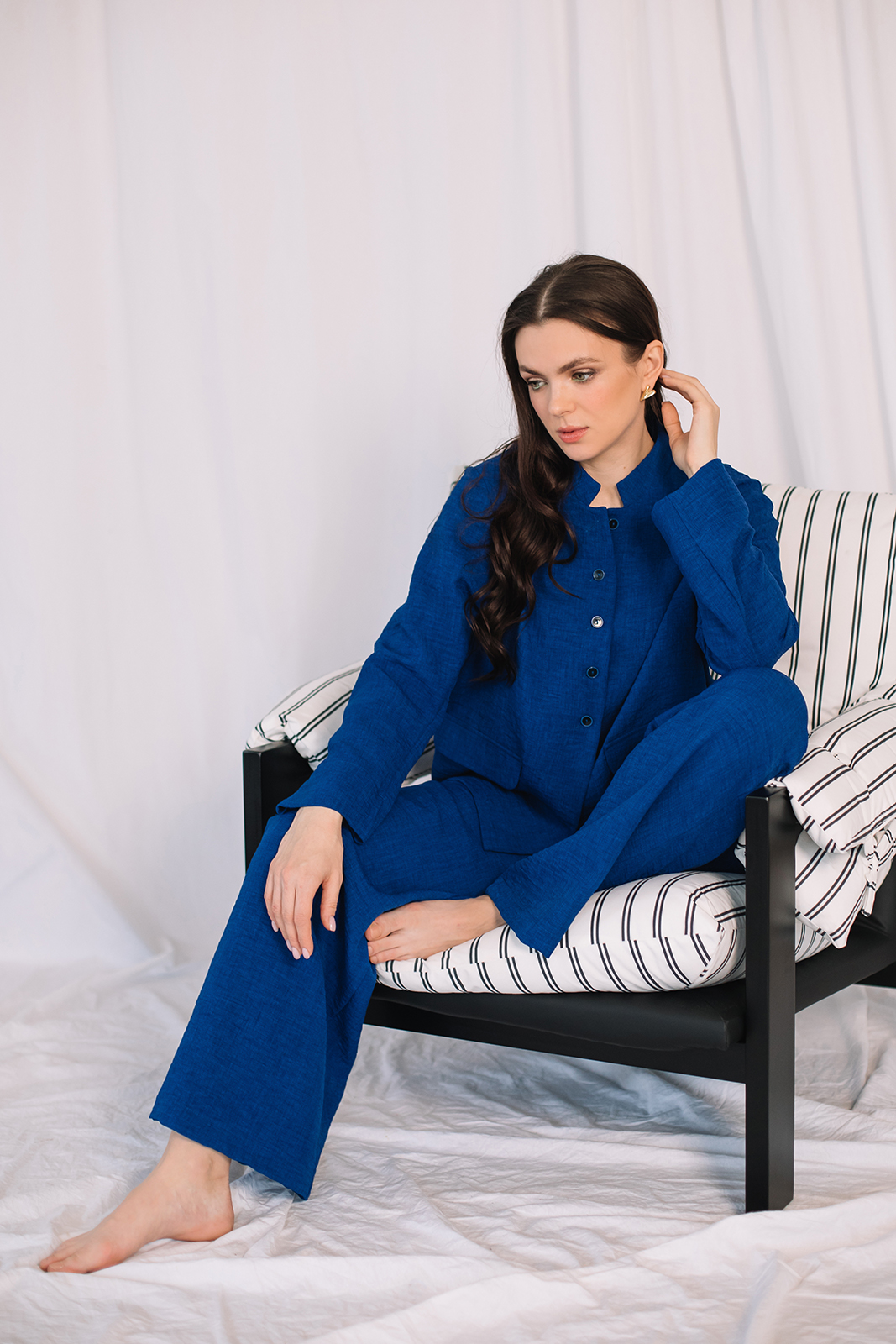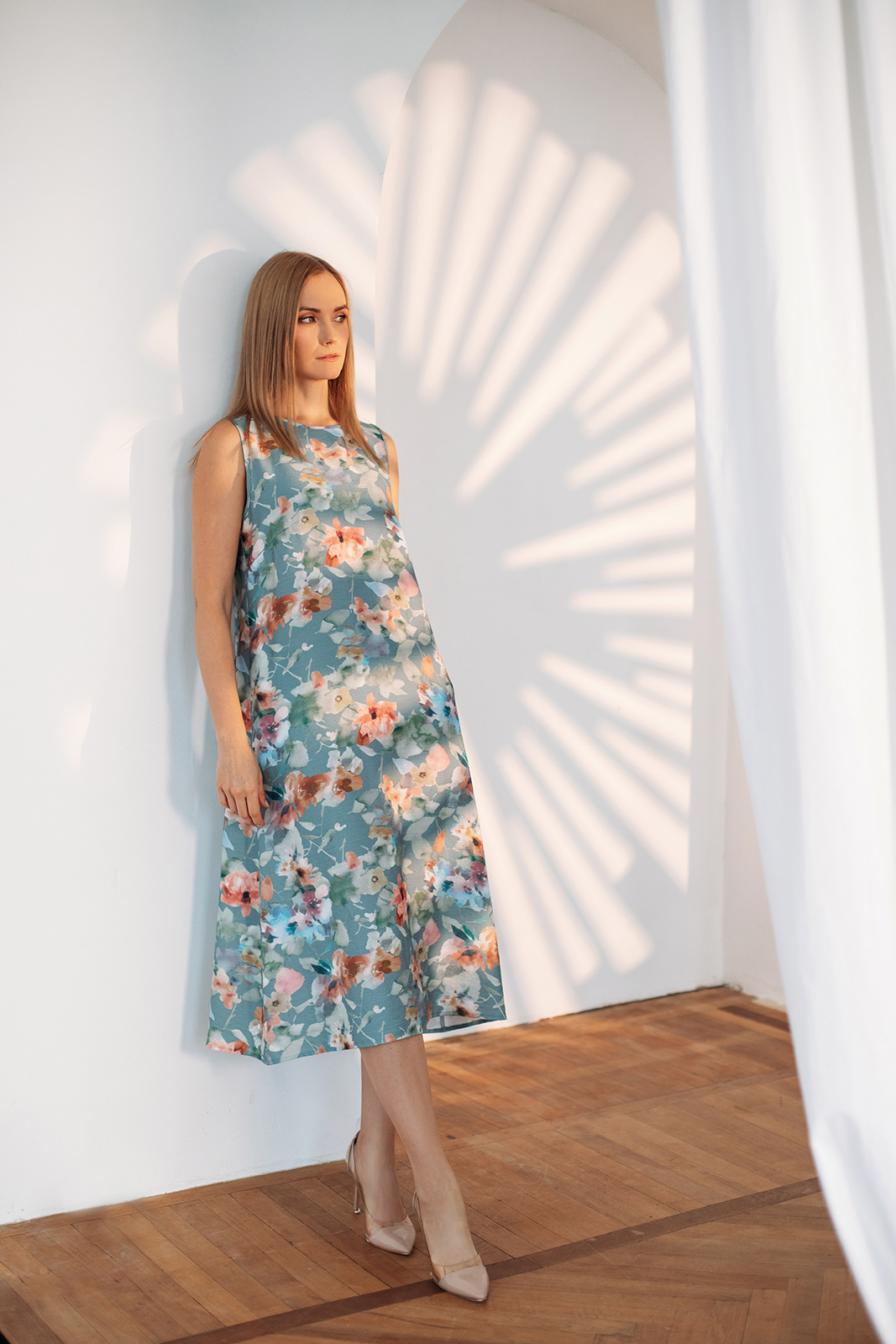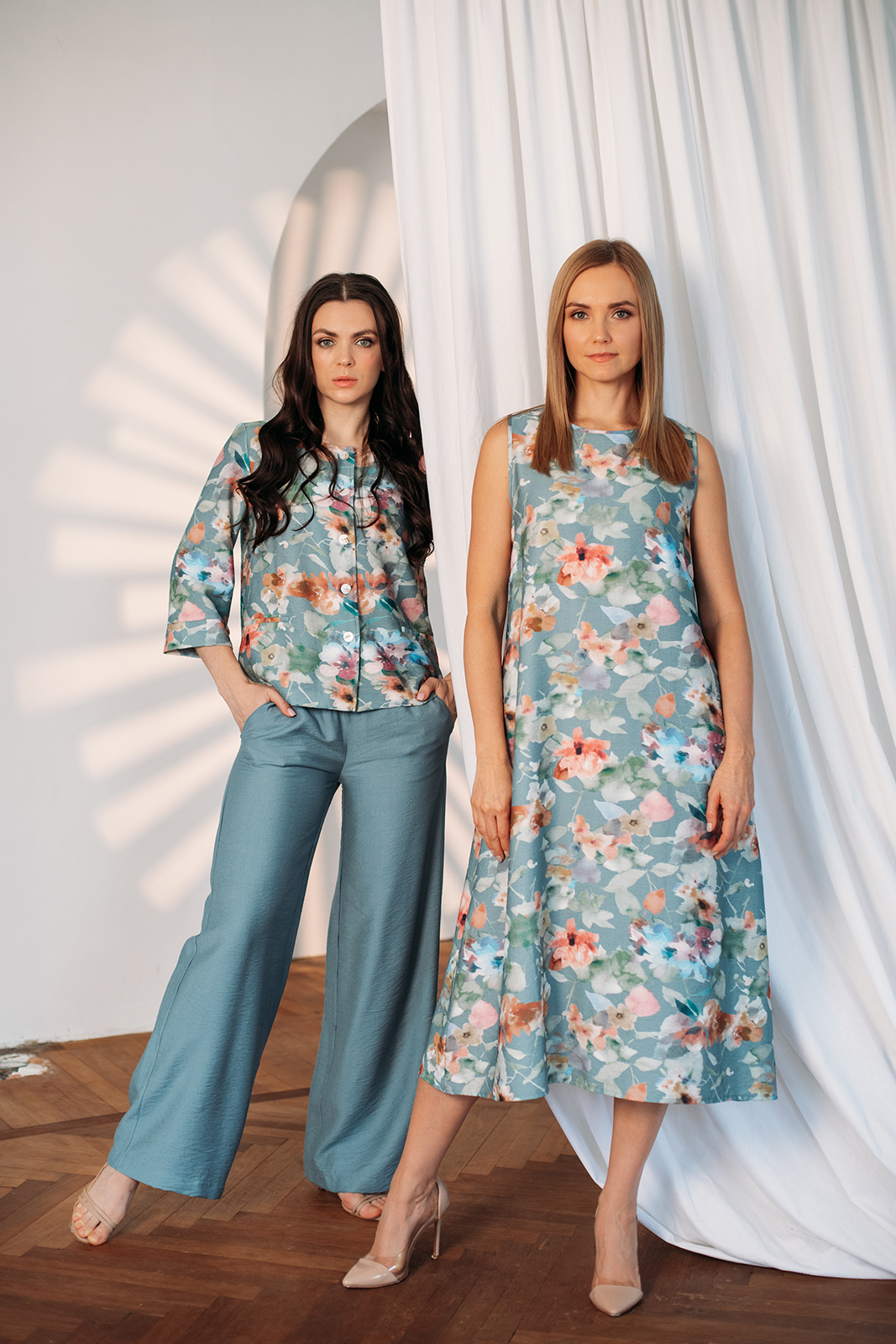 Это отражение красоты и гармонии. Капсула переливается оттенками неба, дворцовых садов и пустынных пейзажей: лимонный, серо-голубой, индиго и теплый песочный. Ткани с сиянием шелка подчеркивают богатство и изящество лаконичных моделей.