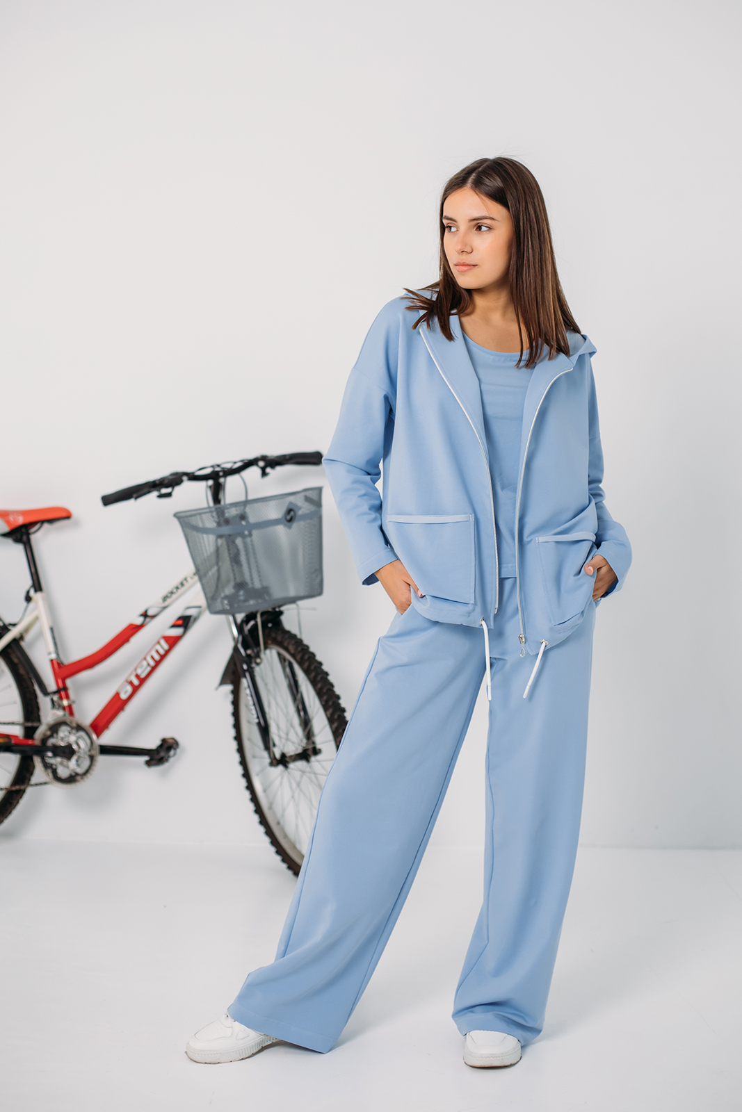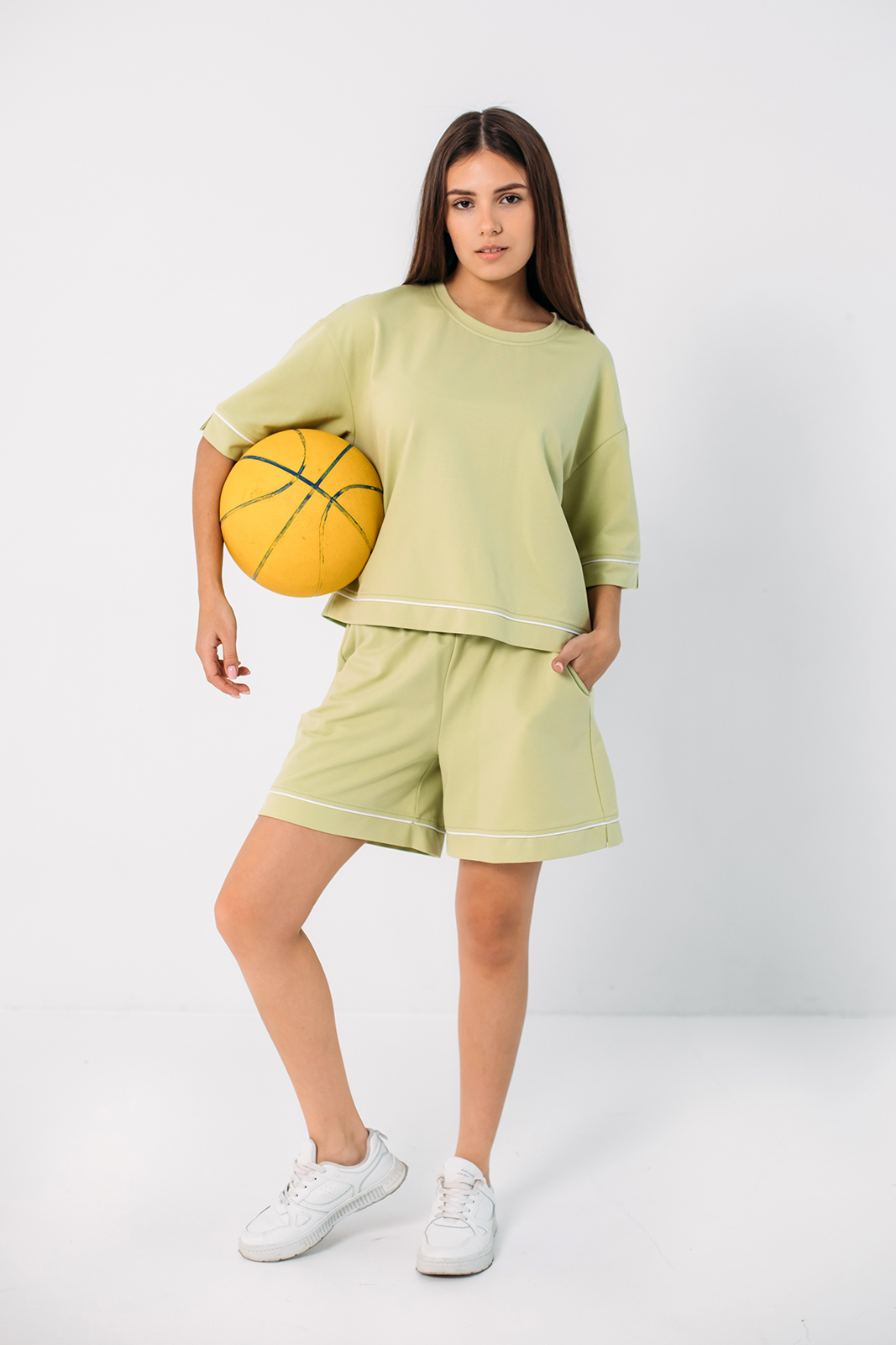 Спортивная коллекция сочетает в себе функциональность, комфорт и современный дизайн. Коллекция играет яркими, жизнерадостными оттенками: электрический синий, лаймовый, голубой и хаки сочетаются с нейтральными черными, серыми и белыми цветами. Контрастные вставки добавляют динамики. Силуэты капсулы — это баланс между облегающими и свободными формами. Множество футболок, шорт и брюк от «оверсайз» до приталенных создают разнообразие для тренировок и повседневной носки.