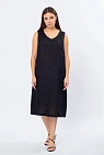 Платье выполнено в прямом свободном крое, мягко ниспадает по фигуре и не сковывает движения. V-образный вырез добавляет изящности и визуально вытягивает силуэт. Модель без рукавов идеально подходит для тёплого времени года.