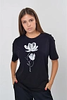 Футболка подойдёт для летнего сезона и теплых дней. Принт в виде цветка придаёт ей особый шарм.