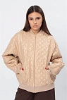 Женский стёганый жакет свободного кроя с застёжкой на молнию. Выполнен из лёгкого материала с ромбовидной простёжкой, что придаёт изделию стильный и уютный вид. Модель дополнена воротником-стойкой, манжетами и резинкой по низу, а также удобными боковыми карманами.